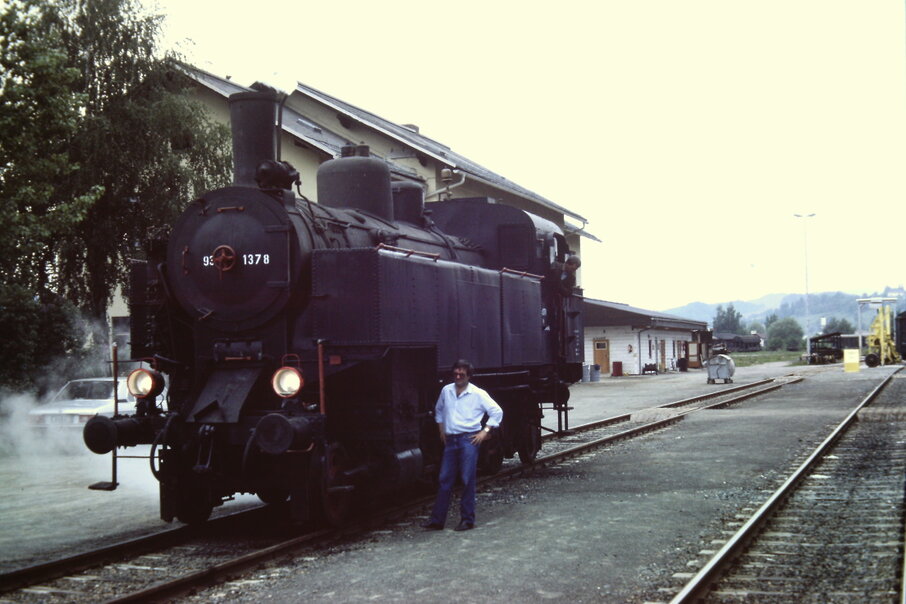 Dampftriebfahrzeug 93.1378 der Kärntner Museumsbahnen (Nachfolgeverein "Nostalgiebahnen in Kärnten") in der Zugförderungsstelle St. Veit (1987)